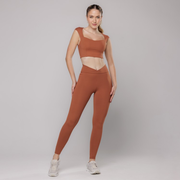 • Legging Fitness Cós Transpassado Marrom