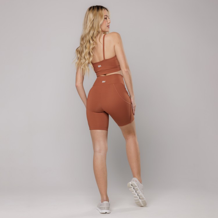 • Short Fitness Alongado com Recortes Moderno Marrom
